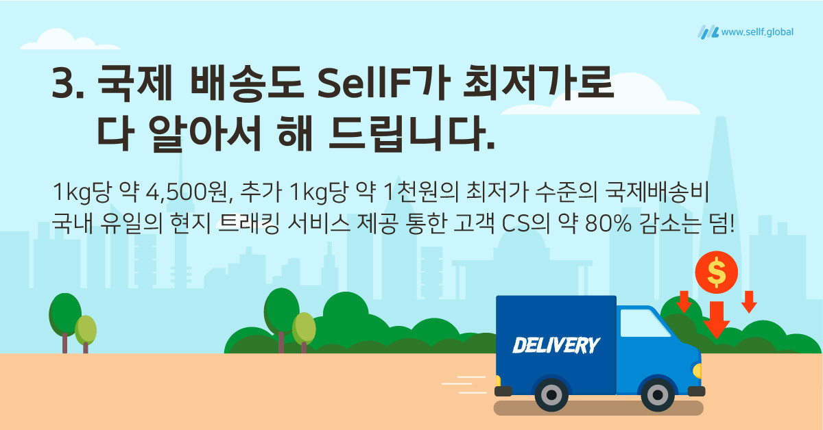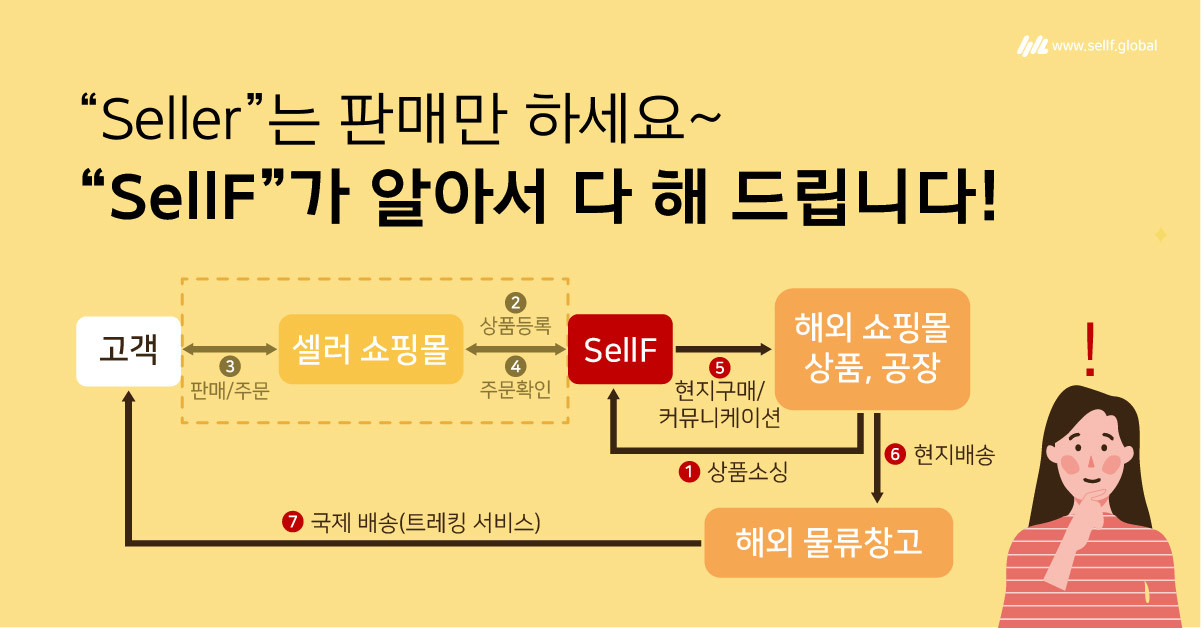 영업만 하기에도 바쁜 소규모 셀러, 기존 국내 상품에 해외 상품으로 상품군을 더 넓히고 싶은데 추가 투자 여력이 없는 셀러 분들이라면 SellF를 통해 오직 매출 증대에만 집중하실 수 있도록 지원하겠습니다.